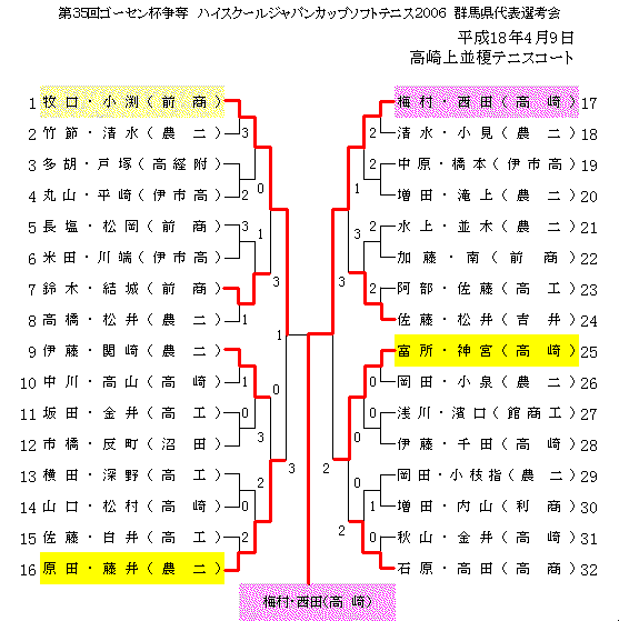 ‘æ35‰ñƒS[ƒZƒ“”t‘ˆ’D @ƒnƒCƒXƒN[ƒ‹ƒWƒƒƒpƒ“ƒJƒbƒvƒ\ƒtƒgƒeƒjƒX‚Q‚O‚O‚U@ŒQ”nŒ§‘ã•\‘Il‰ï •½¬18”N4ŒŽ9“úi“új@‚èã•À‰|’ë‹…ê