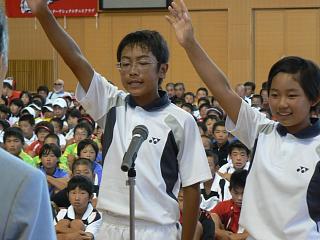 歓迎あいさつ:赤石大輔(前橋JTC) 選手宣誓:大沢知泰(群馬町JTC)・堀越志保(館林スポ少) 司会進行:広瀬未希・竹内彩梨(前橋JTC)