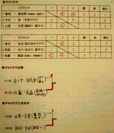 ![]() 開会式で 松村会長あいさつ ![]() 参加者の皆さん ![]() 安田理事長あいさつ ![]() 男子60歳代 決勝戦 ![]() 男子30歳未満(30歳代を含む)優勝 土屋・登坂(東電) ![]() 男子40歳代優勝:池田・高橋(前橋ク・日精工) ![]() 男子50歳代優勝:森島・松本(桐生ク・碓安中ク) ![]() 男子60歳代優勝:佐藤・高庭(前橋ク・伊勢崎ク) ![]() 女子30歳未満優勝:森島・高橋(桐生ク・碓安中ク) ![]() 女子30歳代優勝:豊田・木暮(倉渕ク) ![]() 女子40歳代優勝:柴田・森島(伊勢崎ク・桐生ク) ![]() 女子50歳代優勝:大塚・百瀬(高崎中央ク) ![]() 女子60歳代優勝:三沢・北川(高崎中央ク) |