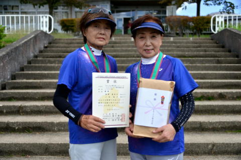 シニア60の部3年連続優勝表彰 狩野・小島 ペア
