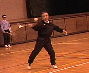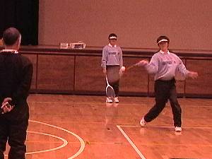 | 1 講義 何を目標にするか 競技スポーツ:より速く ・・・ミスしやすい より正確に ・・・遅くなる この矛盾したことを追求する。 リズムとバランスが大切 生まれ育って持っているものは直せない 意識させてはいけないことを意識させるとバランスを壊す。 自転車に乗るにしてもある程度のスピードでこがなければ倒れてしまう。 平均台でも倒れそうになれば自然に腕でバランスをとろうとする。 動きの中で自然にバランスを保とうとする力を信じて引き出してやることが大切。 原理・原則を大切にした指導を グリップ強く握らない方が速いボールが行く 二本の指だけでラケットを持っても打点の前後でコースの打ち分けができる。 ロブ:頭の位置を後ろに トップ打ち:頭の位置を前に |